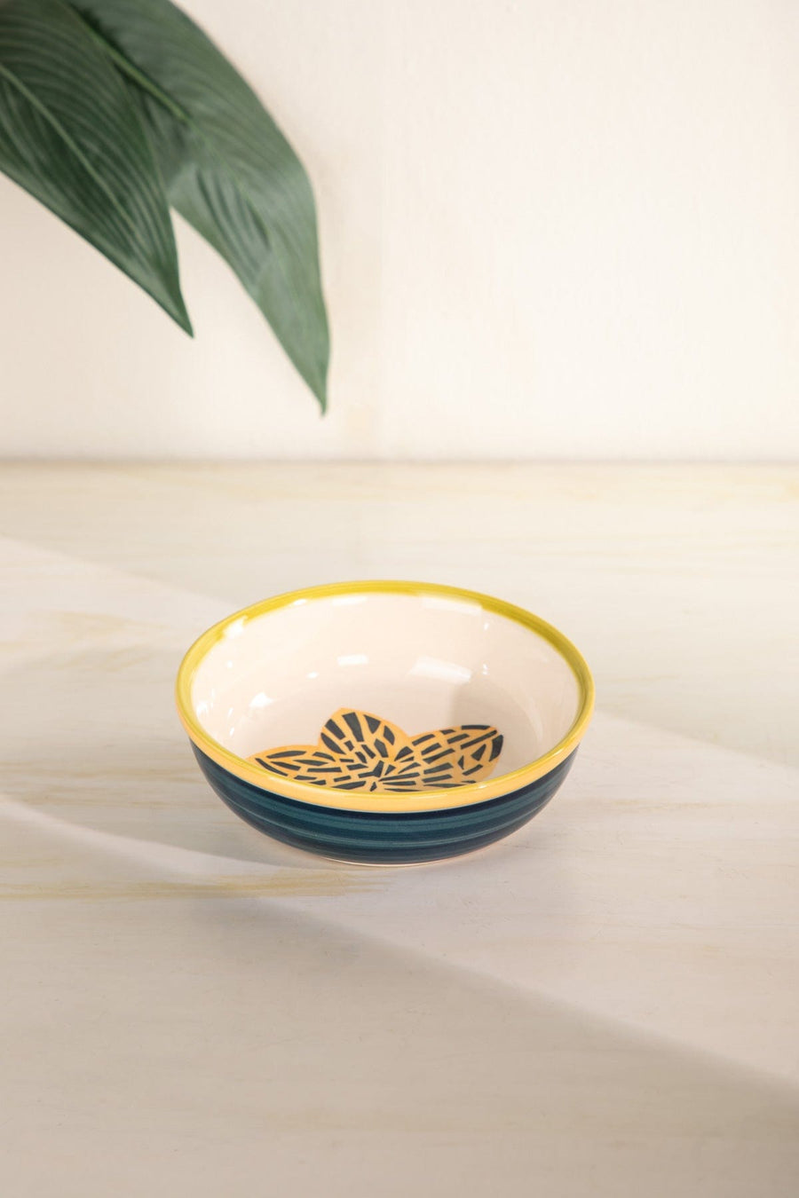 Regular price Rs. 1,480The Tulukka Cereal Bowl is crafted in ceramic and finished in a bright mustard glaze border with an intricate tulukka bloom inside. Compact and versatile, it’s perfect for morning cereals, snacks, or desserts. A striking piece that adds joy to both everyday meals and festive tablescapes.