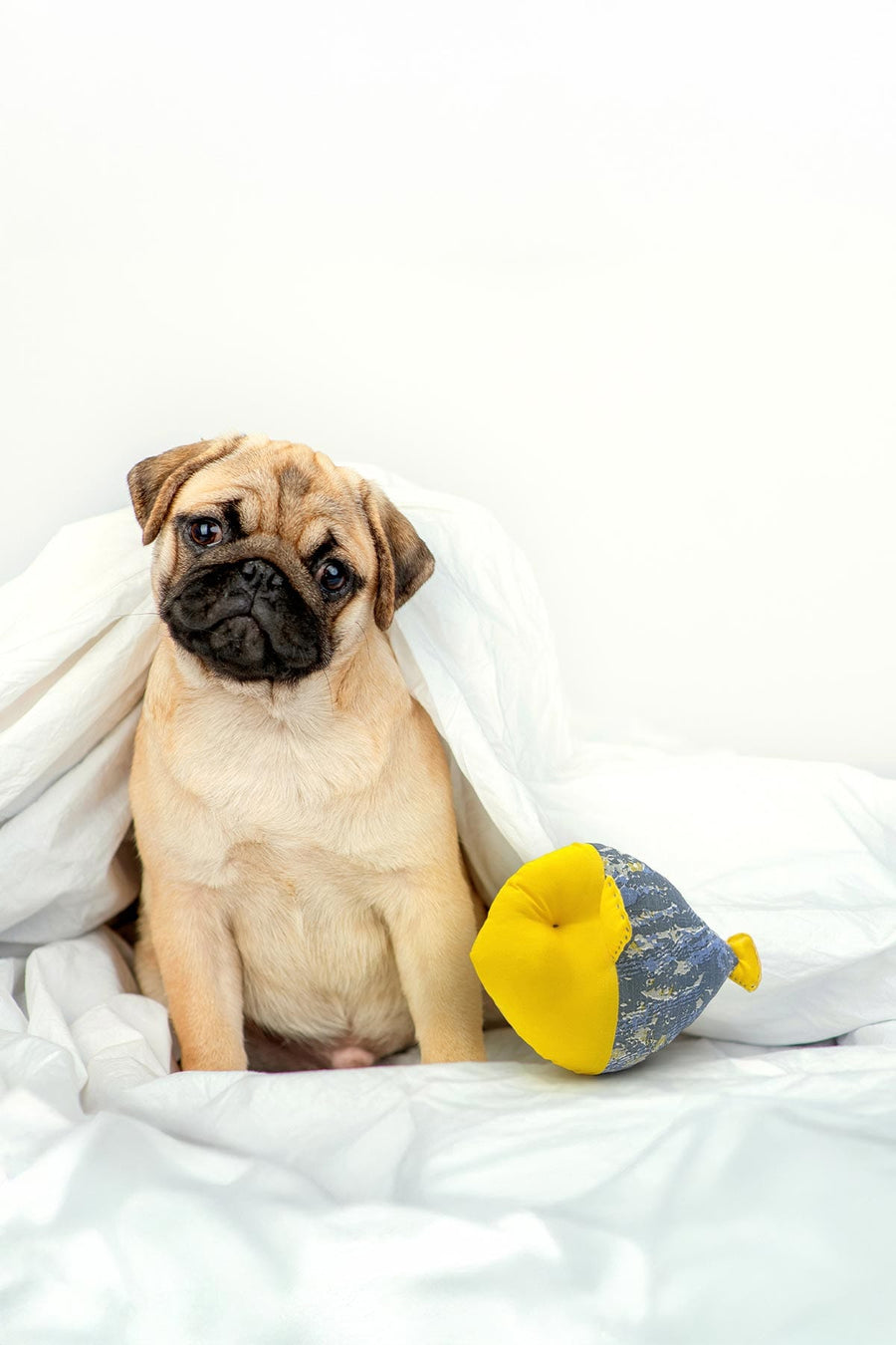 “Where’s my Fish Buddy?” Feeling carefree, like a cool sea-laden breeze, catch Dory Blue Toy Fish. Crafted by hand with the softest plushest fabric and matching every thoughtful stitch into shades of playful royal blue and a spark of golden sunshine prints, watch your canine baby experience the joyful splash and sounds of underwater playtime. Discover how your furry beloved’s squeaky playtime is a fun dive ahead into whimsical sea-blue, aquatic depths!