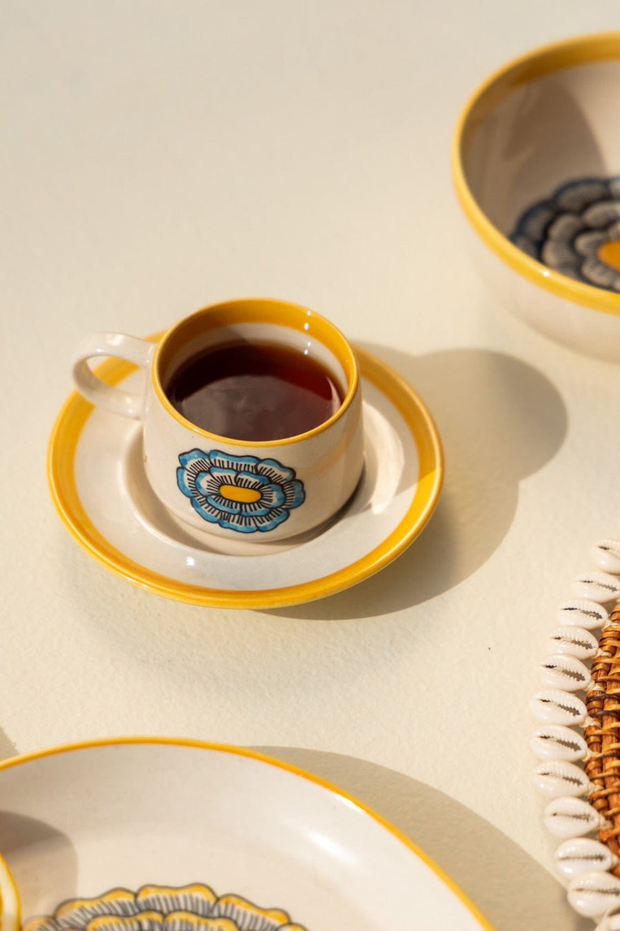 Regular price Rs. 880Rendered with generous stripes and abstracted blocks, the City Espresso mug set is perfect for your caffeine hit. It completes a culturally accented modern table setting and is ideal when paired with the matching rectangle palette for a sweet side.