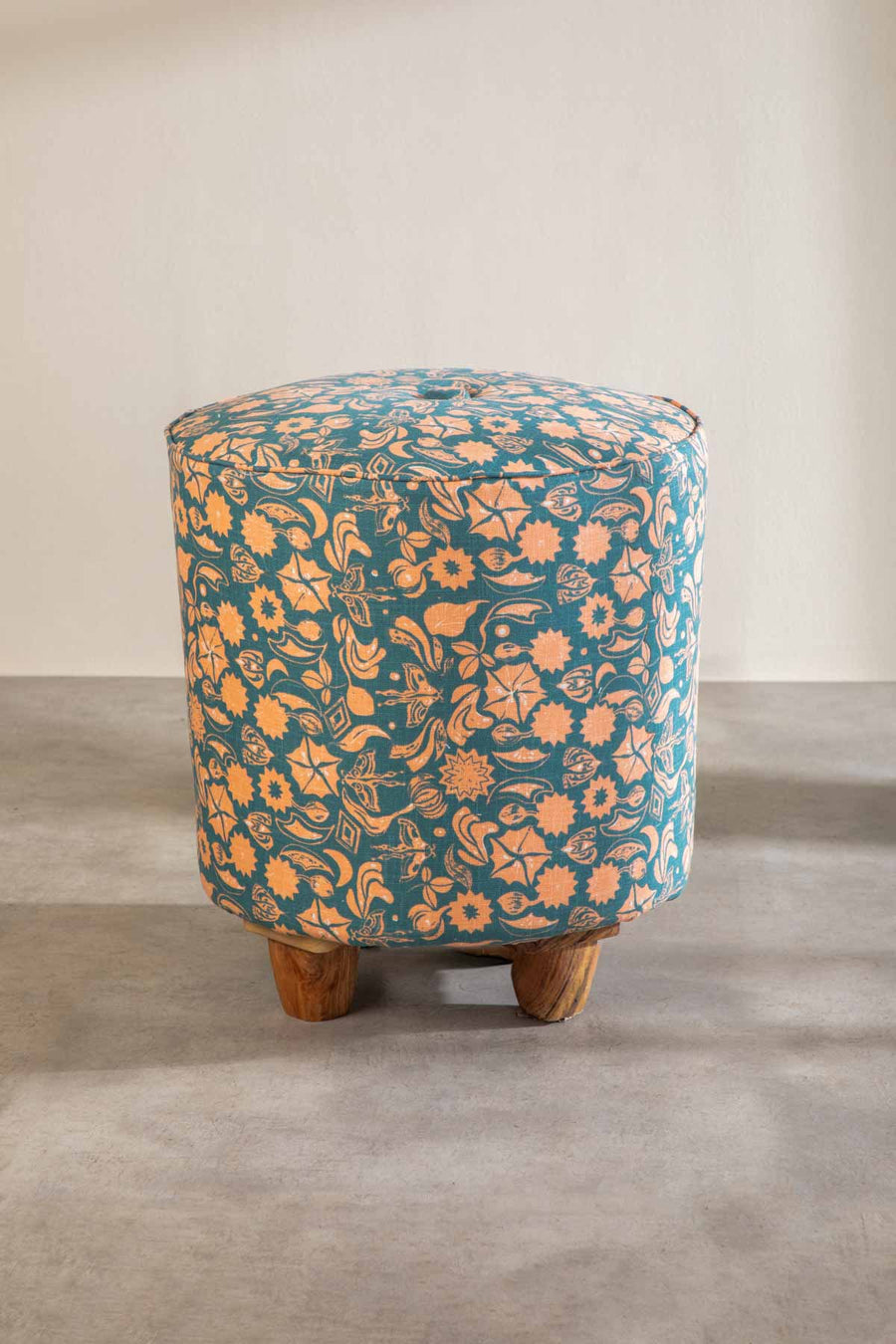 The Flower Pouffe is a tale of craftsmanship and whimsy, locally made with teak wood, upholstered in soft foam, and wrapped in our signature fabric. The top features deep buttoning in the centre, creating a flower-like appearance. Bring a “pouffe” of print to any space with this convenient extra seat or a footrest for your sofa.