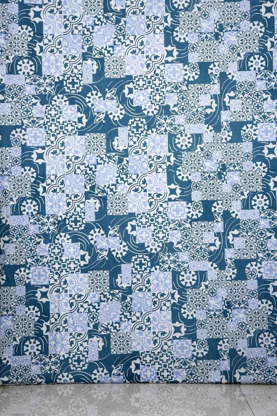 Azulejous Cotton Fabric And Curtains (Tealindi)