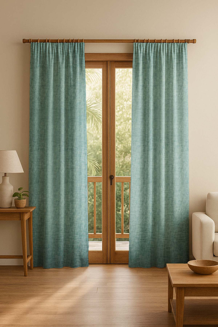 Raffia Turquoise Woven Heavy Fabric And Curtains