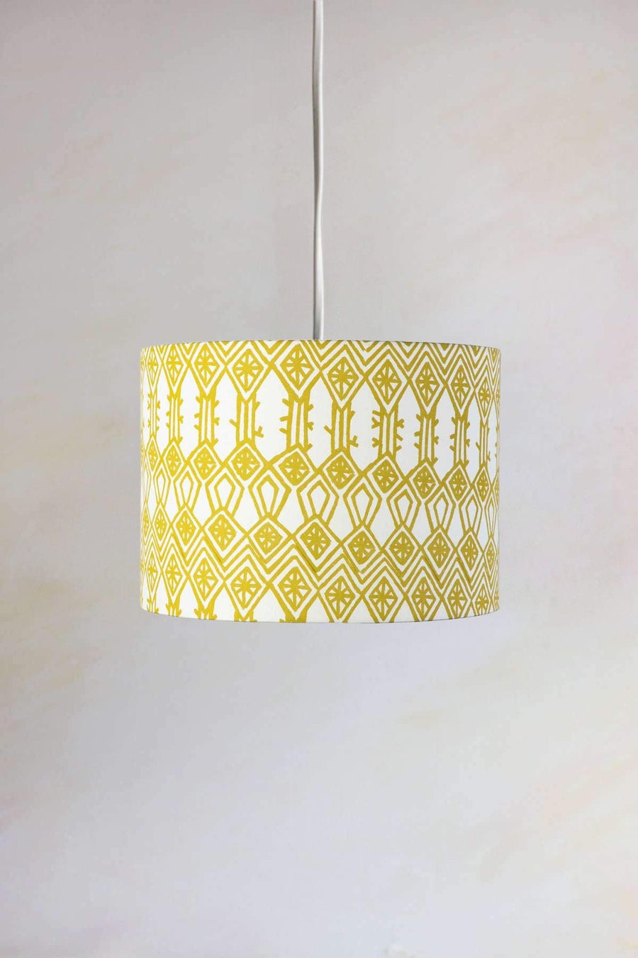 Regular price Rs. 2,980 Sale price Rs. 2,086The Mansara Drum Pendant in our turmeric yellow colourway is now available in a large size meant for mounting on floor lamps and lighting larger spaces. It features our iconic Mansara print of earth’s sacred geometries celebrated on a surface of free-flowing symmetries. Spaced in the living room, next to an accent chair or next to a reading nook by a window, it is made to attract attention.