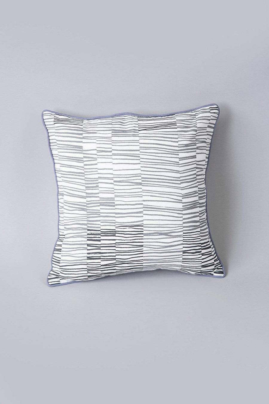 Regular price Rs. 980 Sale price Rs. 490Agama is a celebration of the mathematical orchestration behind intricate ikat patterns, where every thread is a deliberate note in a harmonious tapestry. Blue shades on herringbone cotton, the Agama cushion’s every weave is predestined, giving a sense of yarns tied together and placed on a loom for weaving.