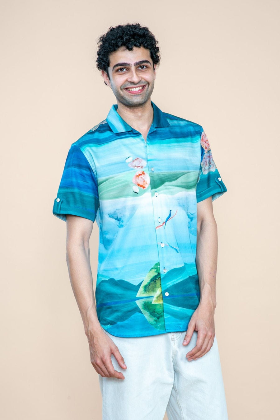 Pangong Lake Printed Camp Shirt (Water Blue)
