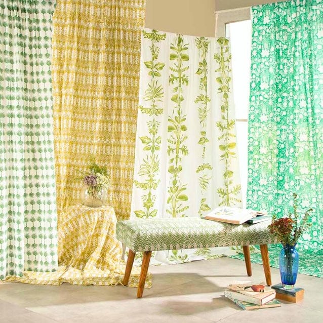 Like a seed that was planted years ago, our continuing love for plants flowers into a print opus on the beauty and healing power of plants. Plant Family takes inspiration from our childhood memories of the garden. From Ayurveda to Apothecary, we take in the cultural and personal impact of the Plant Family and render it in beautiful floral prints of contrasting greens. Pops of pink, sunny yellows, and trippy geometries add whimsy and balance. A healing and inspiring collection of Fabrics, Furnishings, Dining and Décor. The freedom of choice to paint your own personal memories of the garden.