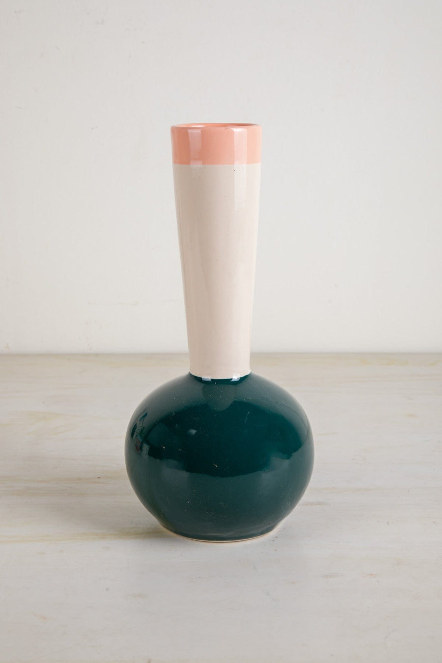 Regular price Rs. 2,480With a bold teal base, a soft neutral neck, and a blush-accented rim, the Bulb Ceramic Vase is a striking blend of color and form. Perfect for fresh or dried florals, it adds a modern, artistic touch to any space.
