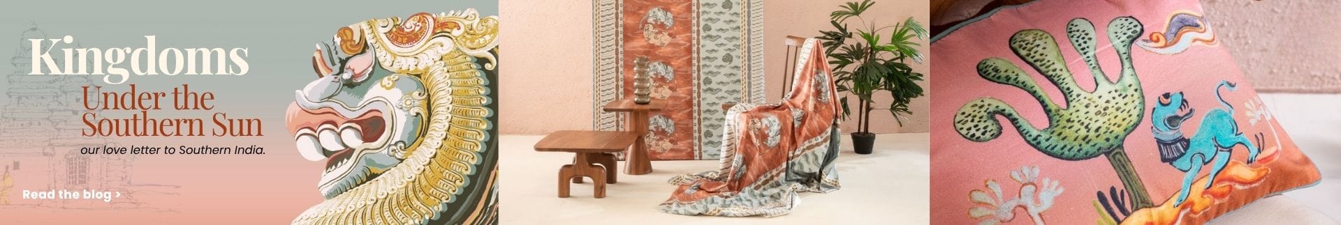 In an age and time when regionalism is being uniquely mined for identity, we take pride in casting our eyes to the fabulous kingdoms and outposts of Southern India. We revive a cultural opus from our design archives, an inspiration from the cusp of heritage, where tradition meets trend. The collection is infused with rich patterns and texture, softened into sophistication by the use of muted color and luxurious materials. This is our love letter to Southern India.